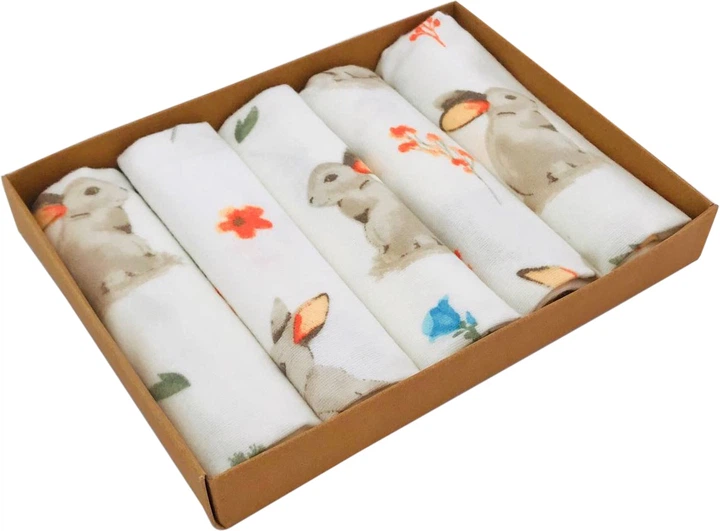 Набір дитячих фланелевих міні пелюшок-рушників BabySoon Зайчики з квіточками 30х35 см 5 шт. (ФП-05)
