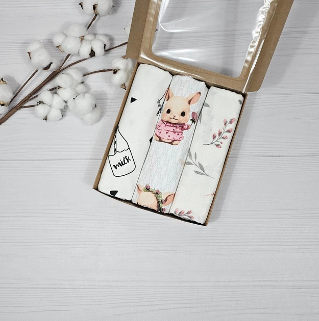 Набір для малюка: пелюшки a.l.babybox Мрійливі зайченята