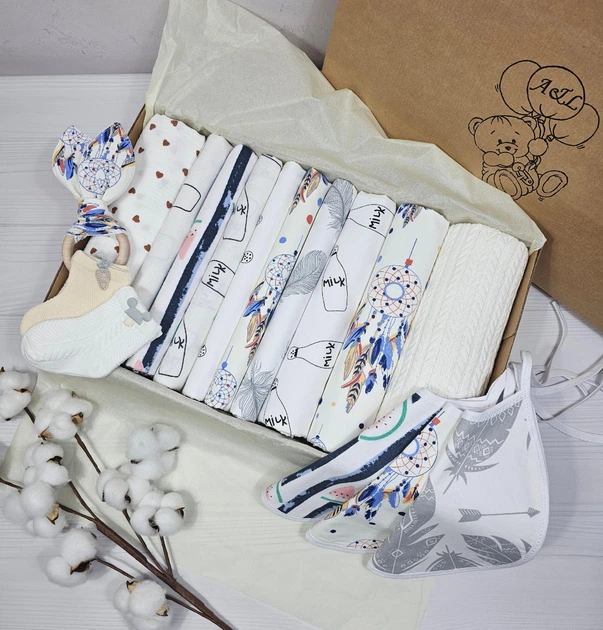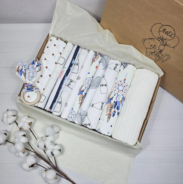 Набір для новонародженого: плед, рушник, пелюшки і гризунок a.l.babybox Ловець снів