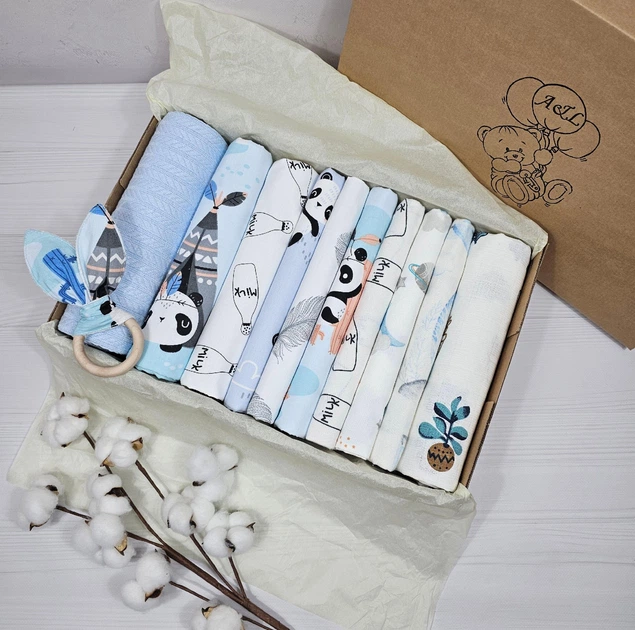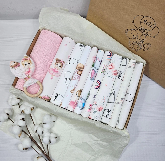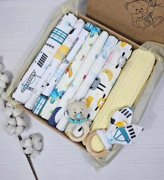 Набір для новонародженого: плед, пелюшки і гризунок a.l.babybox Бавовна