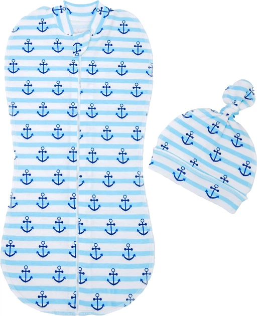 Євро-пелюшка BabySoon Морячок з шапочкою на блискавці 0-3 місяці Блакитна (ПК-402)