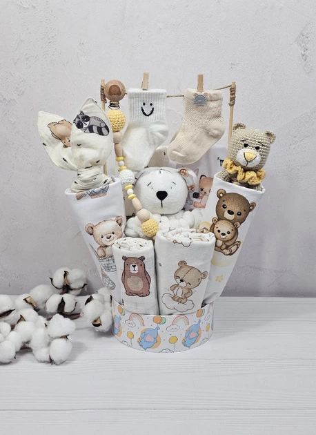 Букет для немовлят з пелюшок a.l.babybox “Ведмедики”