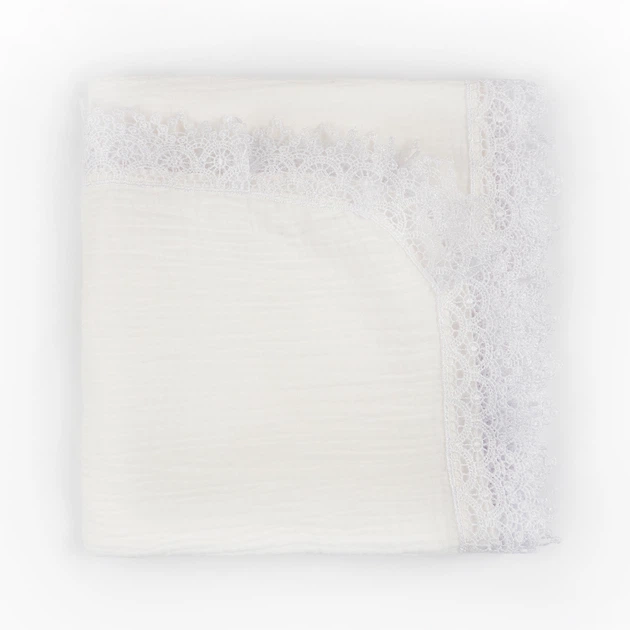 Крижма для немовлят з мереживом Pure 100-100см Молочний