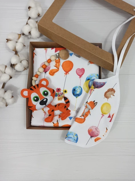 Набір для новонародженого: непромокаюча пелюшка, слинявчик і іграшка a.l.babybox Лисички на кулькахРізнокольоровий