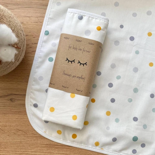 Набір для новонародженого: непромокаюча пелюшка, слинявчик і іграшка a.l.babybox М'ятний горох Білий