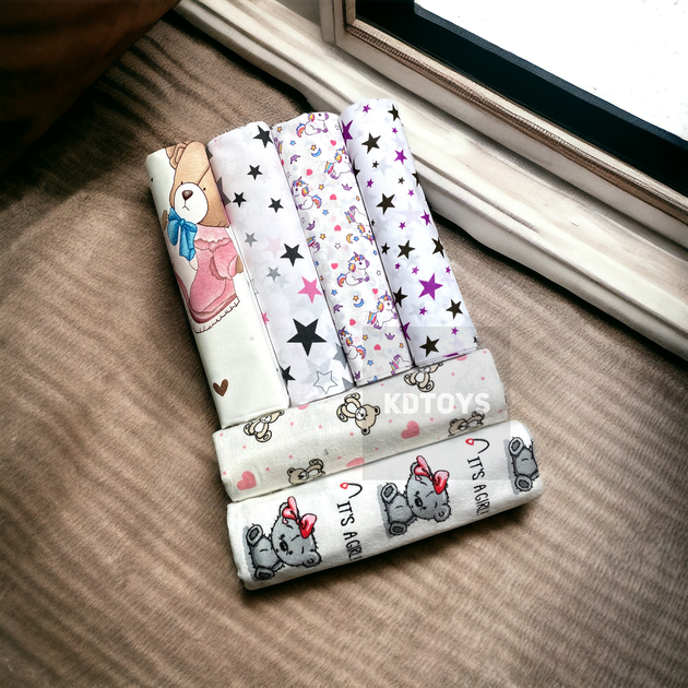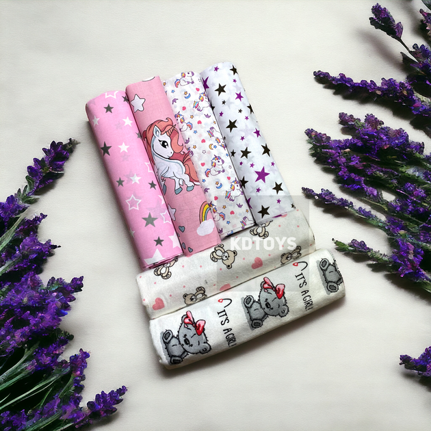 Набір дитячих пелюшок для дівчинки 2 пелюшки байка 2 пелюшки бязь 2 пелюшки ситець - 90 х 110 см (6 шт) 10.008