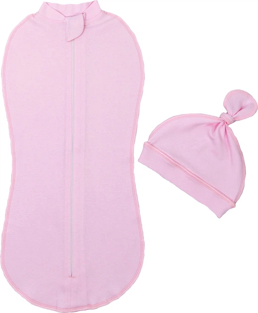 Євро-пелюшка BabySoon Ніжно-рожева з шапочкою на блискавці 0-3 місяці (ПК-481)