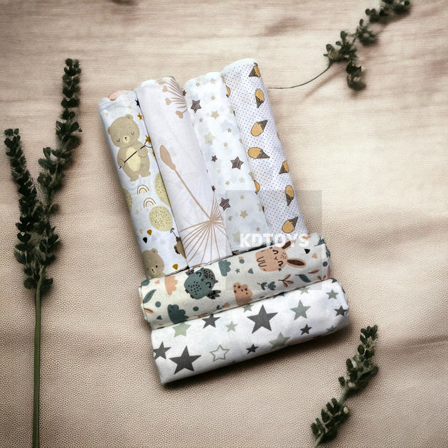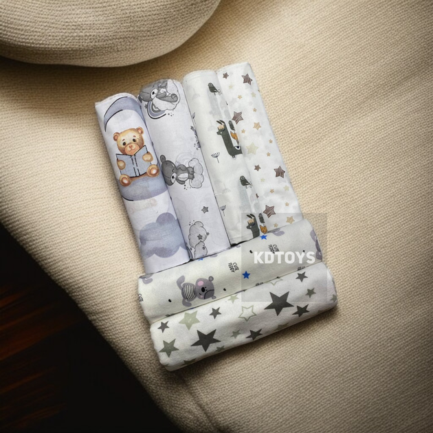 Набір дитячих пелюшок універсальних 2 пелюшки байка 2 пелюшки бязь 2 пелюшки ситець - 90 х 110 см (6 шт) 10.006