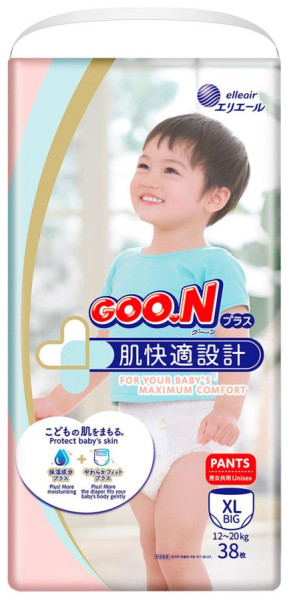 GOO.N Трусики-підгузки GOO.N Plus для дітей 12-20 кг (розмір Big (XL), унісекс, 38 шт)
