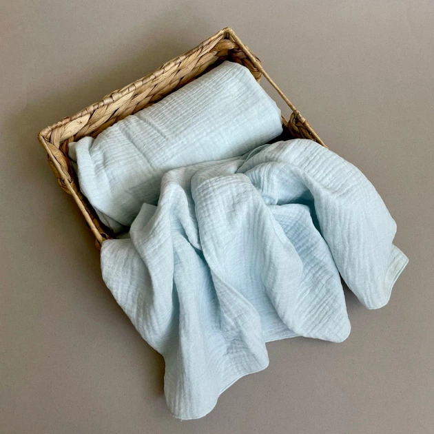 Пелюшка Anny.Home муслінова дитяча 120х120 см багаторазова двошарова бавовняна Блакитна пудра
