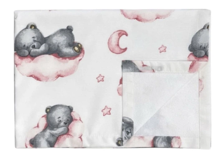 Непромокаюча бавовняна пелюшка 50 на 70 см Мишка на хмаринці Білий/ Рожевий