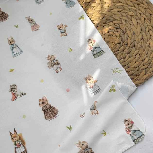 Пелюшка бавовняна багаторазова для новонародженого 90х80 см звірята біла з малюнком