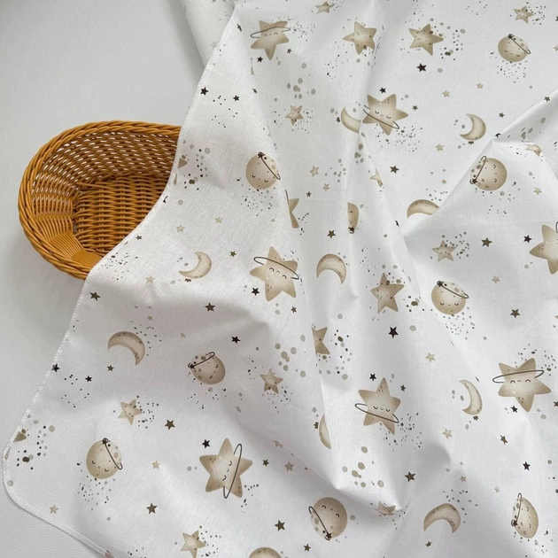 Пелюшка бавовняна багаторазова для новонародженого 90х80 см Планета біла з малюнком