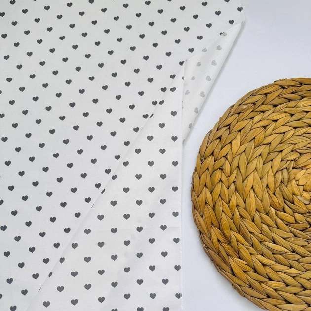Пелюшка бавовняна багаторазова для новонародженого 90х80 см Сердечки біла з сірим малюнком