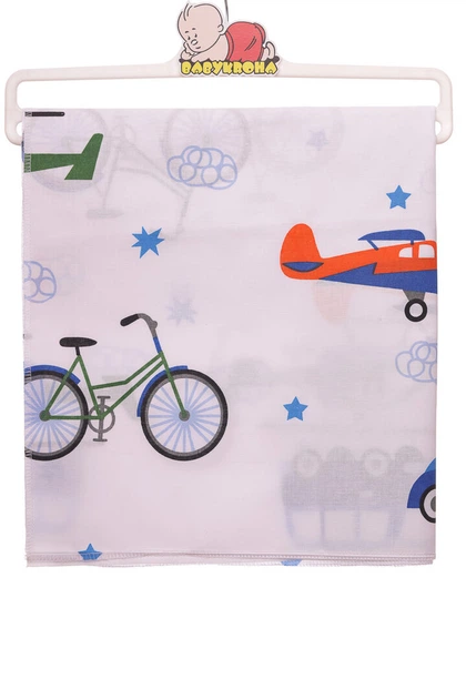 Пелюшка бавовняна для хлопчика з транспортом 110*85 см біла (51912)