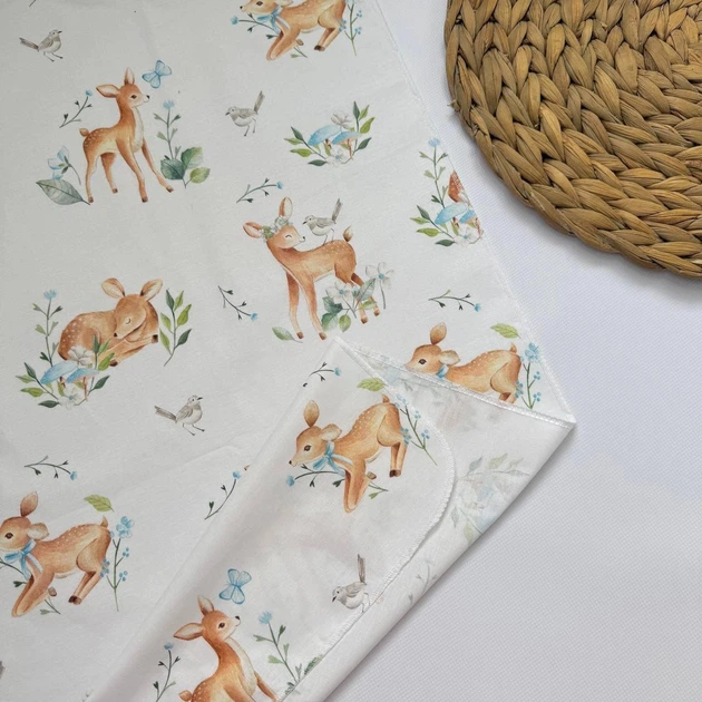 Пелюшка бавовняна багаторазова для новонародженого 90х80 см оленята біла з малюнком
