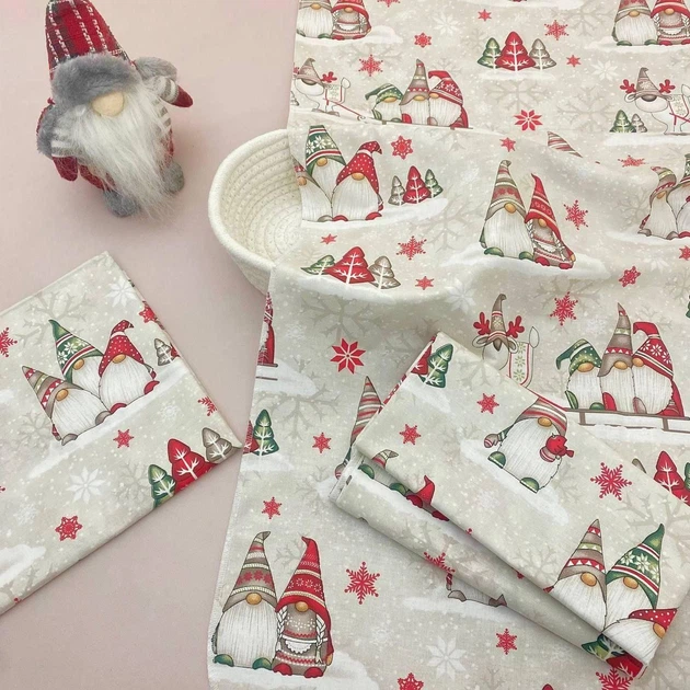 Пелюшка бавовняна багаторазова для новонародженого 90х80 см Новорічні гноми молочна з малюнком