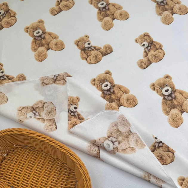 Пелюшка бавовняна багаторазова для новонародженого 90х80 см Ведмедик з бантом біла з малюнком