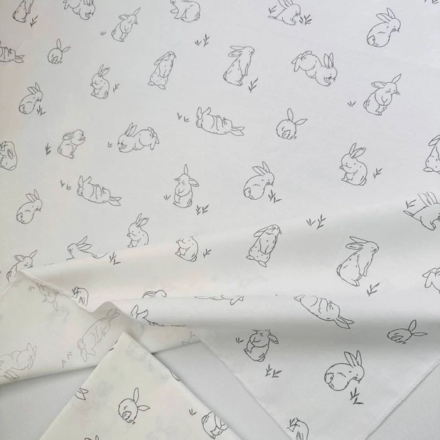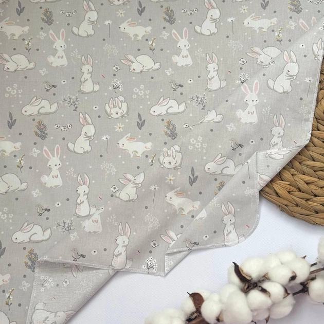 Пелюшка бавовняна багаторазова для новонародженого 90х80 см Сірі зайчики біла з малюнком