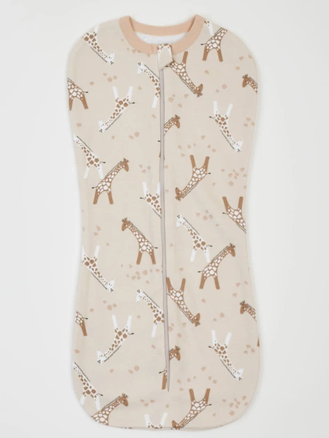 Утеплена європелюшка-кокон для новонароджених на липучці KRAKO "Жирафчики" 5030Y32 56–62 см Бежевий (2000070022252)