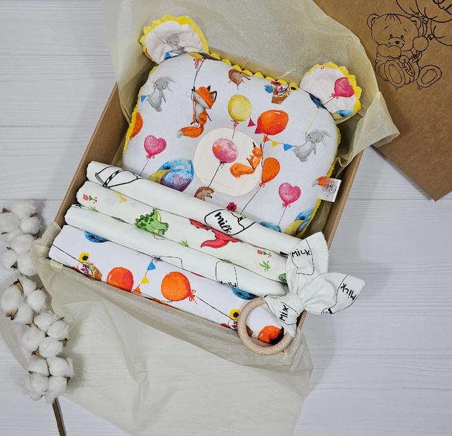 Набір пелюшок для новонароджених a.l.babybox Лисички на кульках Жовтний №2