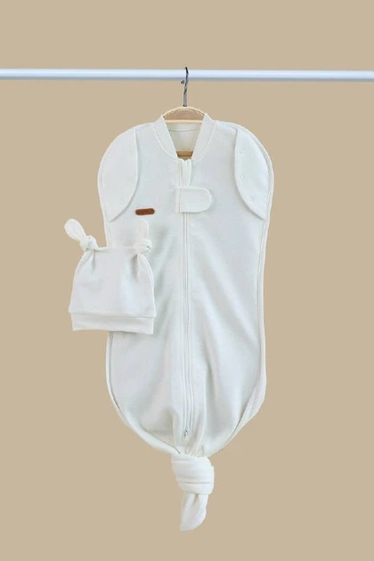 Дитяча євро пелюшка кокон європеляшка безрозмірна на блискавці з шапочкою для новонародженого Слонова кістка (DS262)