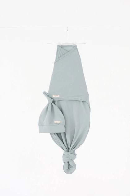 Дитяча євро пелюшка кокон європеляшка безрозмірна на липучках з шапочкою для новонародженого Сизий (014901)