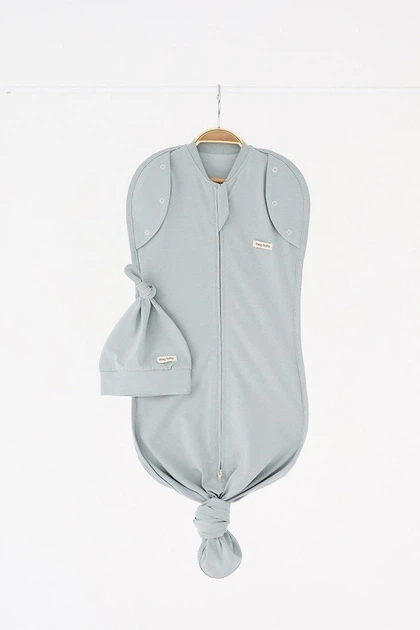 Дитяча євро пелюшка кокон європеляшка безрозмірна на блискавці з шапочкою для новонародженого Сизий (014900)