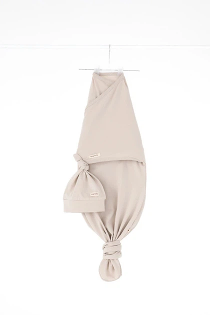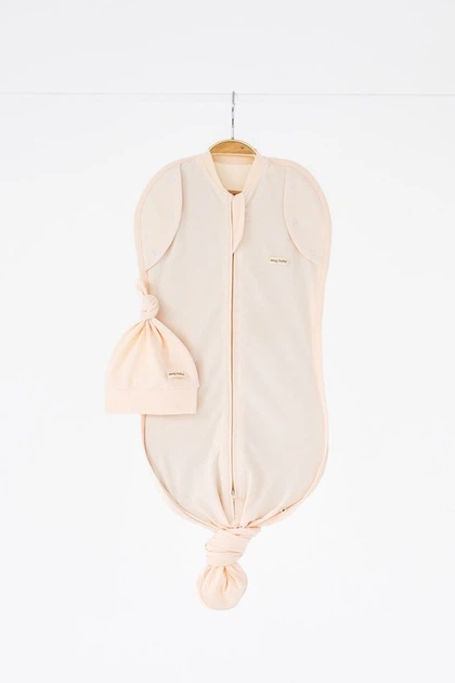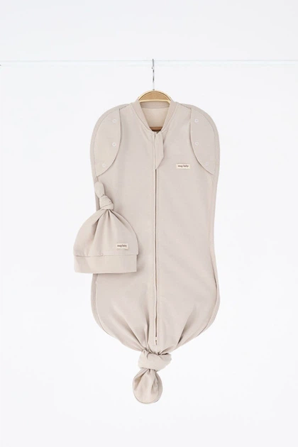 Дитяча євро пелюшка кокон європеляшка безрозмірна на блискавці з шапочкою для новонародженого Бежевий (024889)