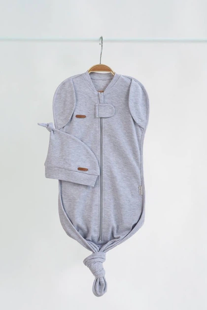 Дитяча євро пелюшка кокон європеляшка безрозмірна на блискавці з шапочкою для новонародженого Сірий (024876)