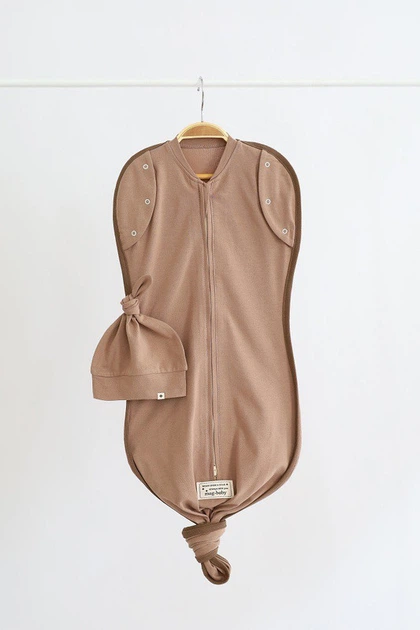 Дитяча євро пелюшка кокон європеляшка безрозмірна на блискавці з шапочкою для новонародженого Коричневий (024888)
