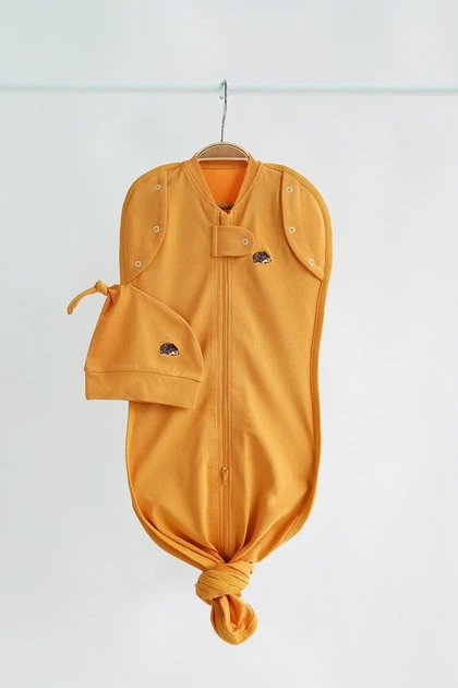 Дитяча євро пелюшка кокон європеляшка безрозмірна на блискавці з шапочкою для новонародженого Гірчичний (024872)