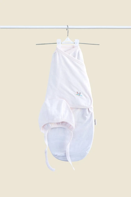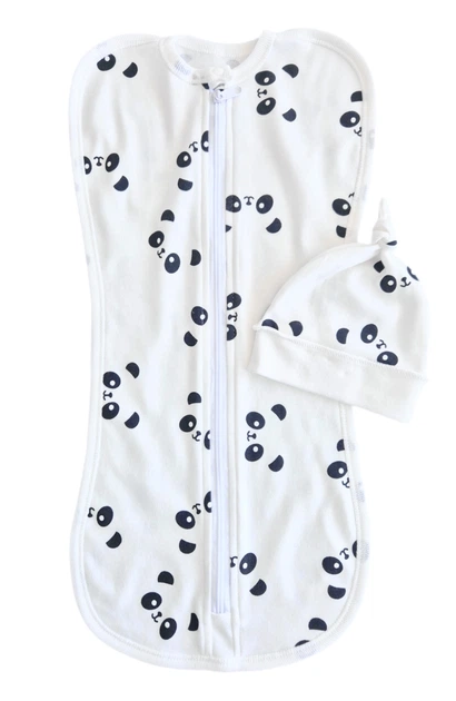 Євро пелюшка кокон на блискавці з шапочкою Панди білі (інтерлок) №108 (0-6 міс)