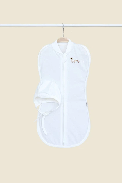 Дитяча євро пелюшка кокон утеплена Kappi європелінка на блискавці з шапочкою для новонародженого 0-3 міс Молочний (АНМ154)