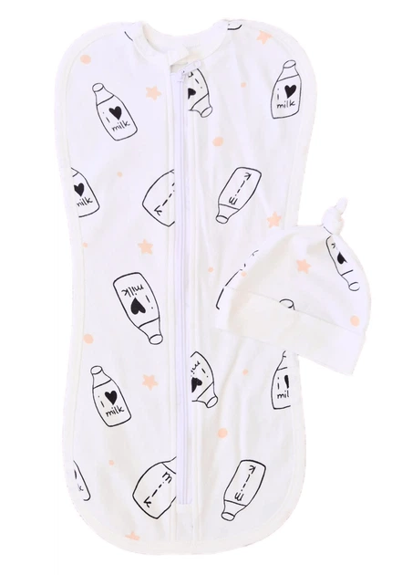 Євро пелюшка кокон на блискавці з шапочкою I Love Milk (інтерлок) №112 (0-6 міс)