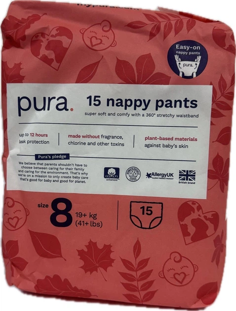 Екологічні підгузки-трусики 8 розміру Pura , 19+ кг 15 шт