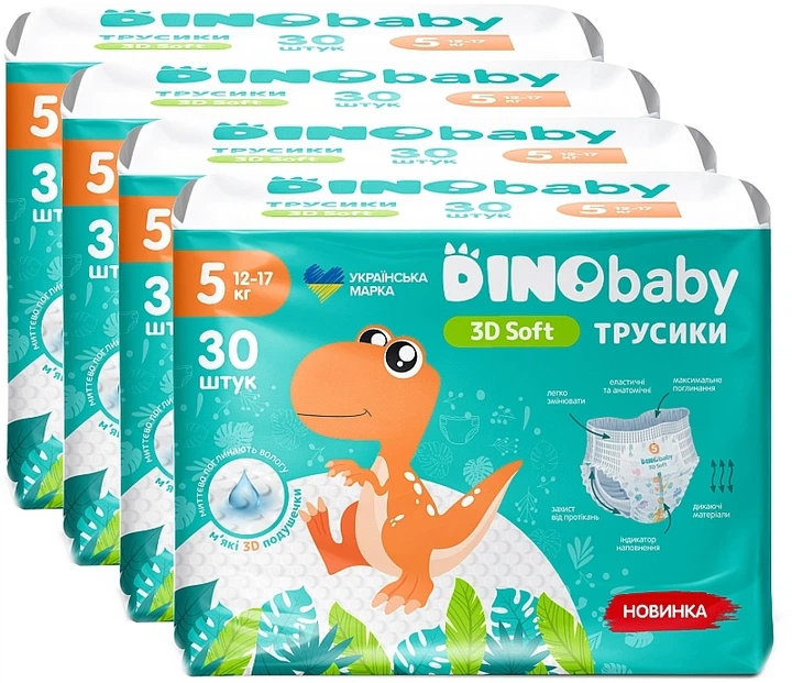 Підгузки-трусики, 5 (12-17 кг), 4x30 шт. - Dino Baby 3D Soft 120шт (1249978-915975345-2)