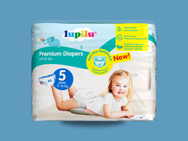 Преміум підгузники Lupilu soft & dry 5 Junior (10-16 кг) 140 шт