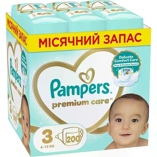 Підгузки Pampers Premium Care 3 (6-10 кг), 200 шт, комплект на місяць