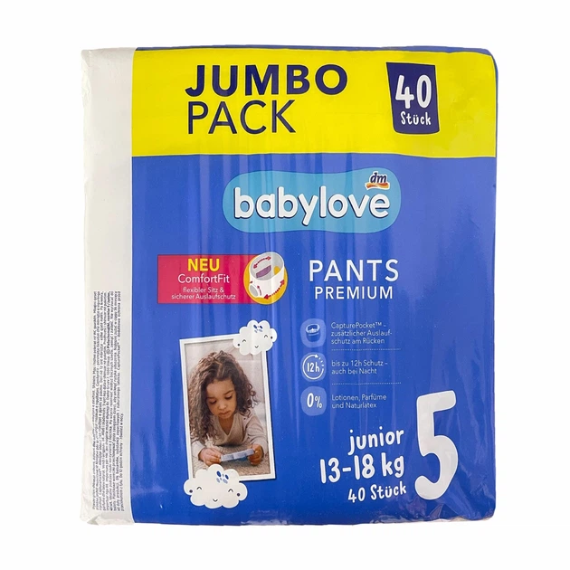 Підгузки-трусики Babylove Premium 5 junior JUMBOPACK (13-18 кг), 40 шт