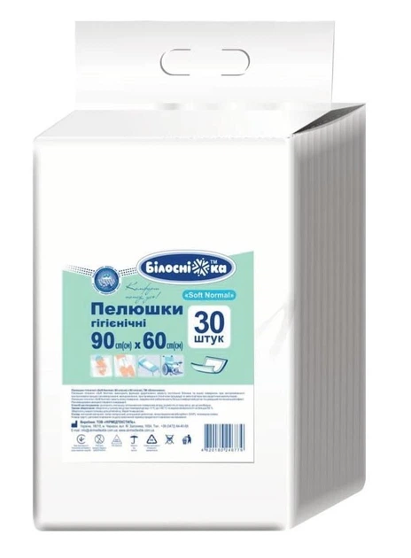 Пелюшки Білосніжка одноразові гігієнічні Soft Normal 90х60 см 30 шт