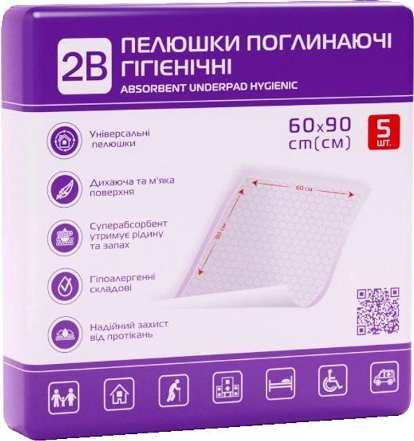 Пелюшки одноразові гігієнічні, що вбирають 2B 60 см х 60 см, 5 шт.