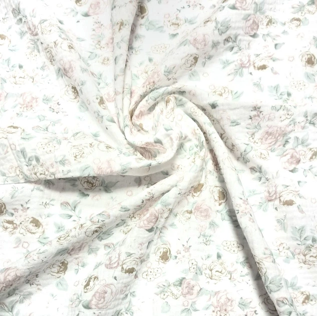 Муслінова пелюшка (жатка) 100 на 70 см Рози Білий/ Бежевий