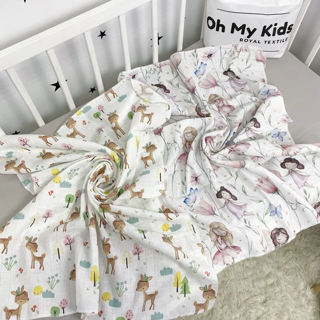 Набір муслінових пелюшок 2 шт для дівчинки Oh My Kids «Феєчки та Оленята»