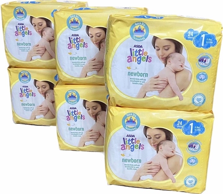 BOX 144 штук підгузків ASDA Little Angels 1 розмір, 2-5 кг