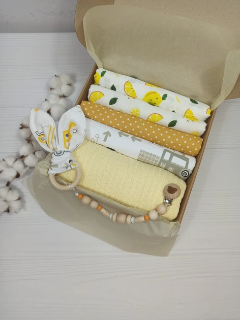Подарунковий комплект для малюка: плед, пелюшки та гризунець a.l.babybox Машини в місті Жовтий