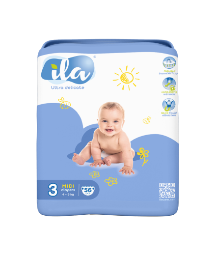 Підгузники Ila Ultra Delicate Midi Розмір 3 (4-9кг) 56 шт.