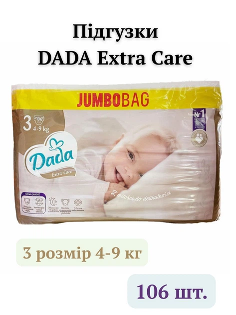 Підгузки дада дитячі Dada Extra Care Jumbo Bag 3 (4-9 кг) 106 штук підгузники памперси преміум для дітей