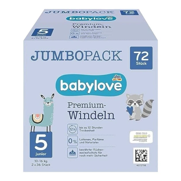 Преміум підгузники Джамбо упаковка babylove 5 Junior 10-16 kg 2x36 шт 72 шт