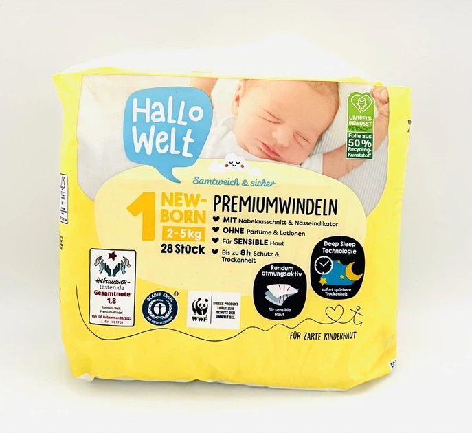 Підгузки 1 розміру Hallo Welt 2-5 кг, 28 шт